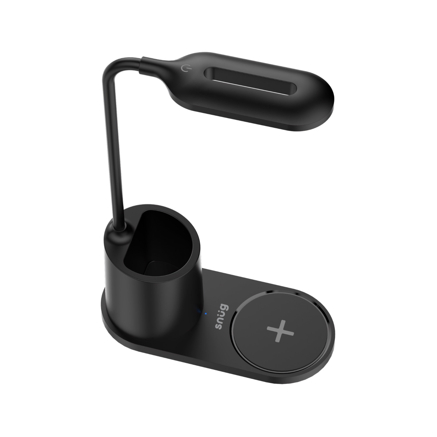 Power. Organize. Illuminate. Meet the Snug 15W Wireless Charger in Black with Pen-Holder – the smart desktop companion that combines style, functionality, and innovation. This all-in-one Snug 15W Wireless Charger features a Qi-enabled wireless charging pad, a built-in pen holder, and an LED desk lamp with touch control and 3 brightness levels – all in one sleek design. With a 360 degree adjustable silicone lamp neck, USB-C input, and support for both Android and iOS, this 15W Wireless Charger brings efficiency and convenience to your workspace. It is perfect for your nightstand, office, or study area. Designed for low energy consumption and equipped with overcharge and overheating protection, it keeps both your tech and your peace of mind safe.