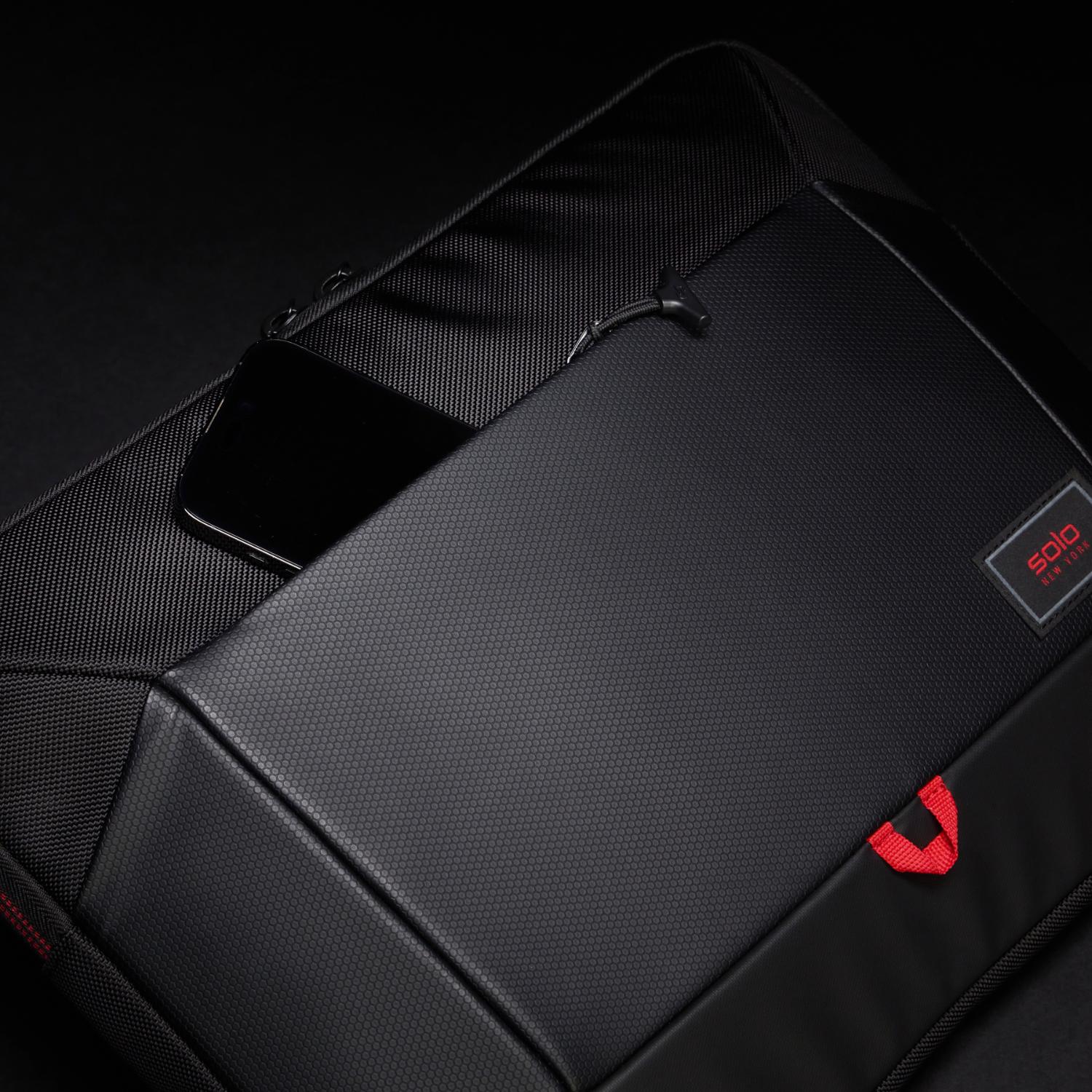 The Solo Caliber Laptop Sleeve features a fully padded design that comfortably fits laptops up to 15.9 inches, helping protect your device from everyday bumps and scratches. A full front-panel zipper pocket with built-in organiser provides convenient storage for cables, chargers, and accessories, keeping everything neatly in one place.